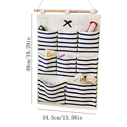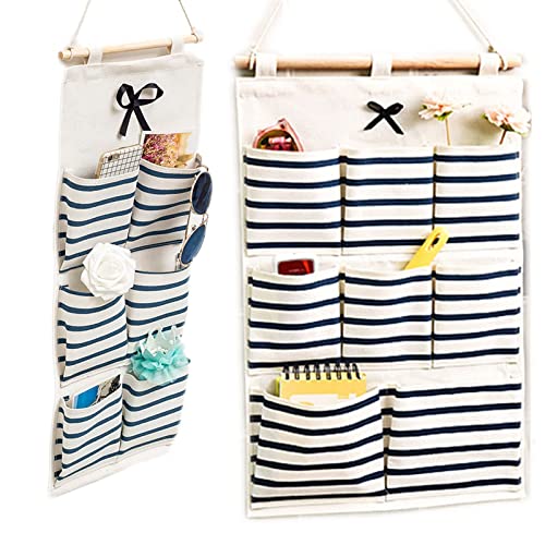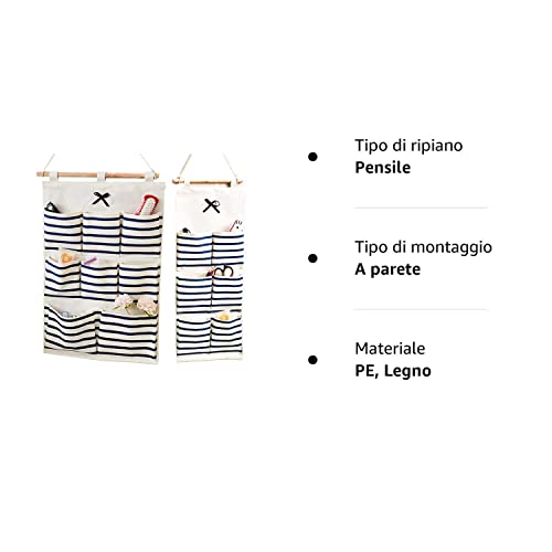 Due tipi: ci sono due tipi di borse appese in cotone e lino, una con sei tasche con strisce blu e una con otto tasche con strisce blu, 2 pezzi in totale. Puoi distribuirli liberamente dove vuoi.