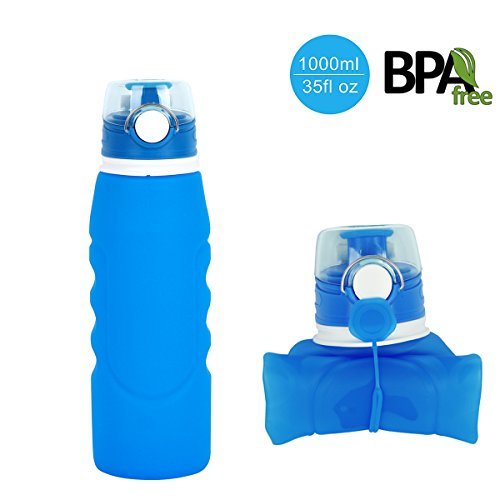 HoShip, bottiglia pieghevole per acqua, da 1000 ml, bottiglia pieghevole in silicone, riutilizzabile, a prova di perdite, borraccia sportiva pieghevole, borraccia per escursioni, da campeggio, da corsa, per yoga, ginnastica, per utilizzo all'aria aperta, Blue