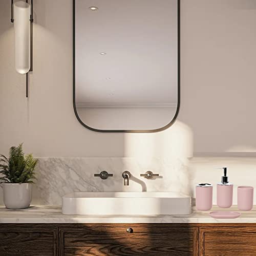 Hosoncovy Set di 4 accessori da bagno con dispenser per sapone, tazza da bagno, portasapone, spazzolino da denti e dentifricio (rosa)