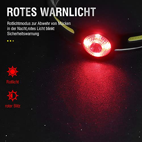 【Lampada frontale a luce rossa】✅Più che una semplice luce bianca, la lampada frontale fornisce anche una luce rossa, l'occhio umano è più sensibile alla gamma di luce rossa, indossare una lampada frontale rossa mentre si corre o si va in bicicletta può attirare i veicoli verso di voi e rendere le vostre attività notturne più sicure. Gli animali non saranno spaventati da queste luci, quindi questa lampada frontale è ottima anche per il campeggio, la pesca, la caccia e la lettura.