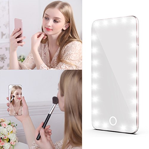 HOSPORT Trucco Specchio con Luci Specchio LED Cosmetic Palmare Portatile, 23 LED Specchio Touch Screen(Oro Rosa)