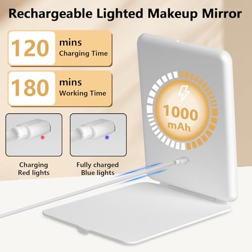 HOSSOM Specchio da Viaggio Ricaricabile Specchio Cosmetico Specchio Trucco con Luci Specchio da Trucco con 72 luci LED, 3 Modalità di Luci Luminosità Regolabile, Specchio per il trucco