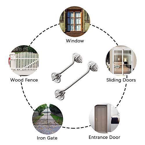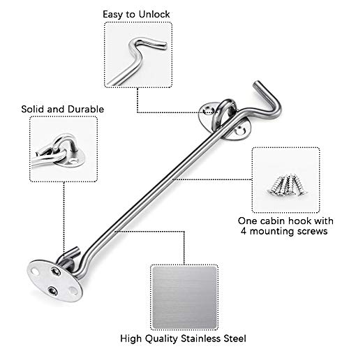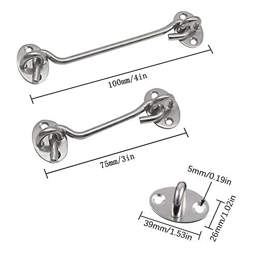 Hostk, set di 6 ganci a occhiello in acciaio inox, include 6 ganci girevoli per cabina, 12 serrature a occhiello, 24 viti di montaggio, per capannoni, cancelli, garage, finestre (4 "100 mm))