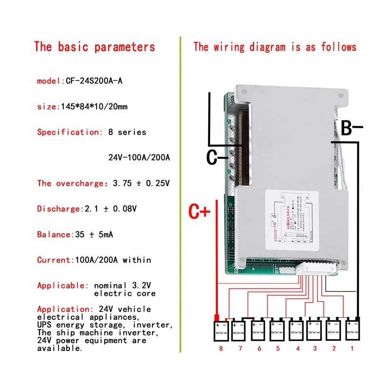 HOT-8S 24V 100A Lifepo4 Battery Protection Board UPS Energy Inverter BMS PCB Board with Balance