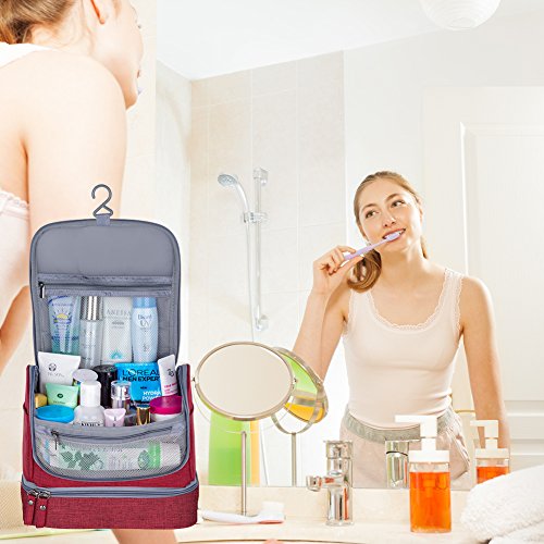 Hotchy Beauty Case da viaggio, Viaggi toilette Borsa Make up Wash Bags Organizer impermeabile con gancio extra e molti scomparti Dry and Wet Separation bag for Men and Women(Nero (Rosso)
