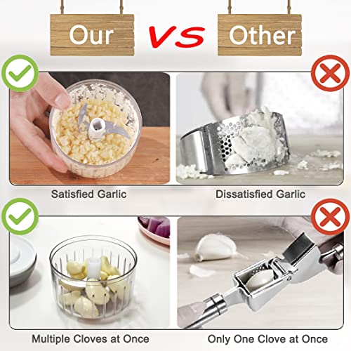 ✔【Capacità Adatto】Spremiaglio da cucina con capacità di 300 ml, che può soddisfare le esigenze di lavorazione di diversi alimenti senza sprechi allo stesso tempo. Il peso del frantumatore è di soli 130g, perfetto per le cucine di casa, i viaggi, i pasti all'aperto in famiglia, il campeggio o altre attività all'aperto.