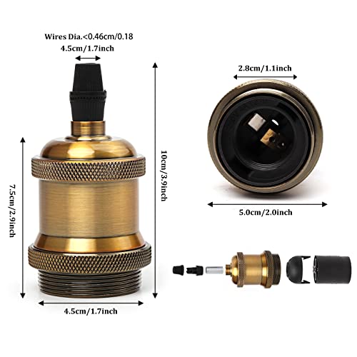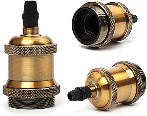 Hotloop Portalampada in metallo vintage, E27, set da 5 pezzi, attacco per lampadina, attacco Edison, adattatore per lampade a sospensione fai da te, industriale, retrò (ottone)