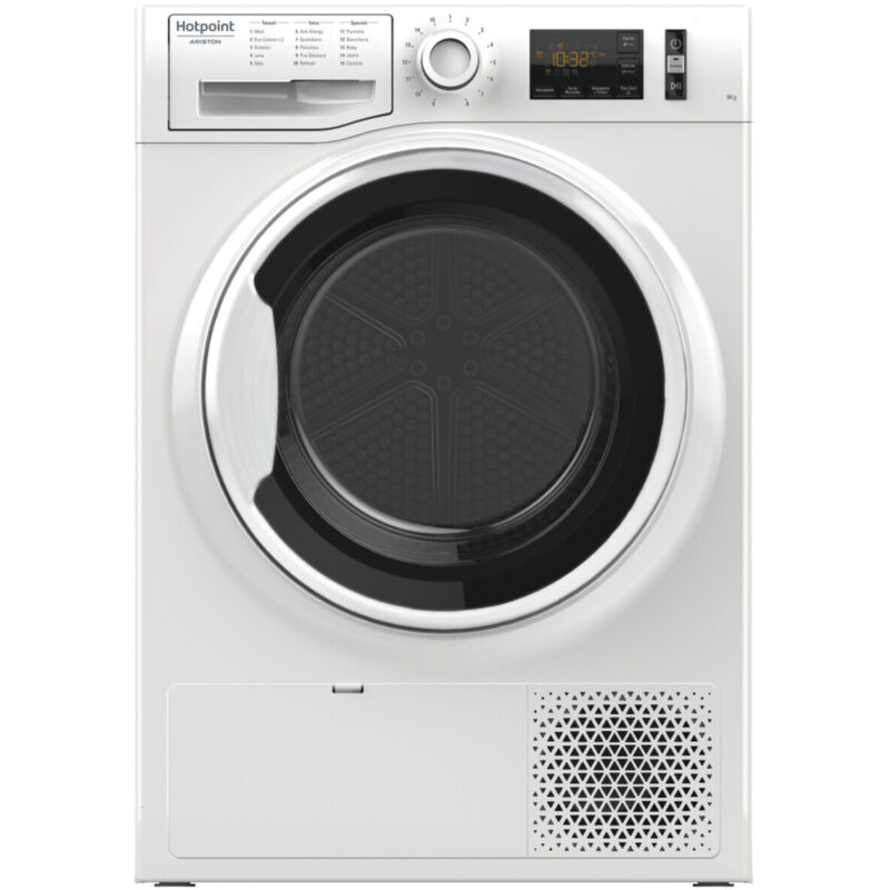 Marchio Hotpoint Posizione di accesso Carico frontale Capacit� 9 Chilogrammi Colore Bianco Dimensioni articolo: LxPxA 65.5 x 59.5 x 84.9 cm Informazioni su questo articolo Filtro easy cleaning: facile da pulire in soli 3 passaggi. Mantenere l'asciugatrice al meglio delle sue performance non � mai stato cos� semplice Motore universale garantito 5 anni Programmi: Piumoni/Piumini, Eco Cotone, Jeans, Misti, Refresh, Camicie, Seta, Sintetici, Lana Opzioni: Partenza ritardata, Livello di asciugatura regolabile, asciugatura a tempo, Blocco tasti/sicurezza bambini Dimensioni prodotto (AxLxP): 84,9x59,5x65,5 cm Peso prodotto: 44 kg Capacit� di lavaggio 9 kg