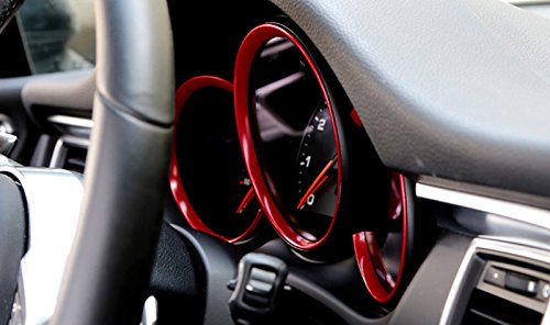 HOTRIMWORLD Per Macan Rosso Interno Frontale Cruscotto Bordo Strumento Pannello Trim Copertura 3 pz 2014-2018