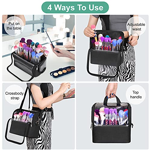 Hotrose Beauty case portatile da viaggio, impermeabile, organizer per trucchi, borsa multifunzione con scomparto rimovibile (nero, grande), Nero, Large-5