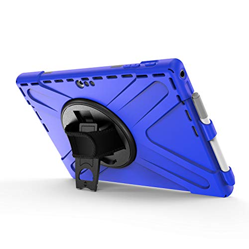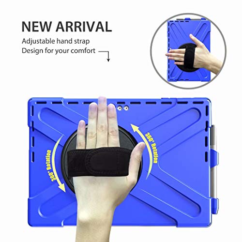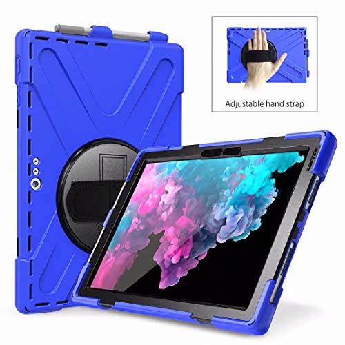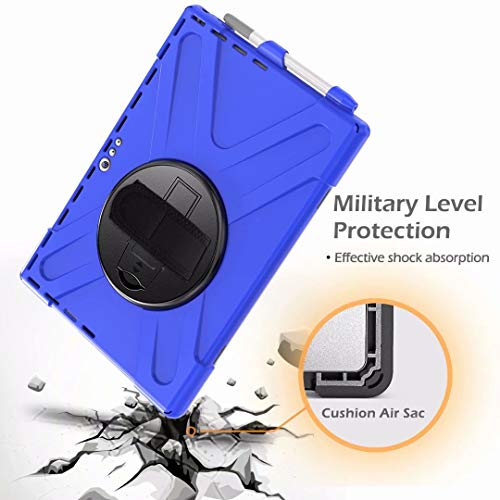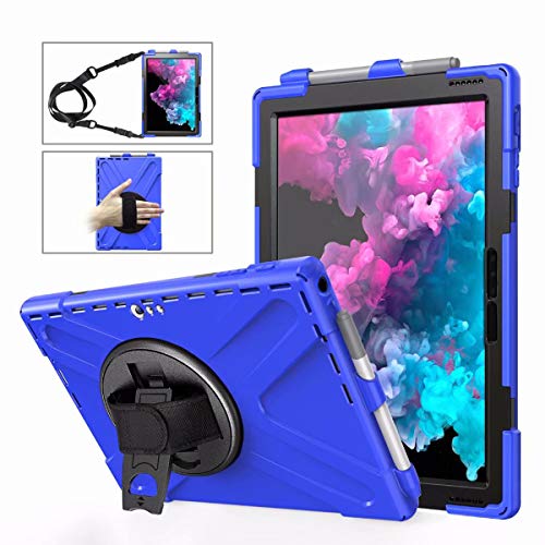 HOTSALEUK - Custodia protettiva resistente a tre strati, con supporto girevole a 360°, con cinturino da polso e tracolla per Microsoft Surface Pro 6/5/4/3, Blu, Microsoft Surface Pro 6 / Pro 5 / Pro 4
