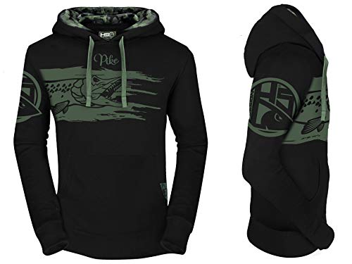 HOTSPOT DESIGN Hoodie Zander, Felpa con Cappuccio per Pescatori di Lucci, Maglione con Dettaglio Mimetico, Nero, Taglia XL, 10301404