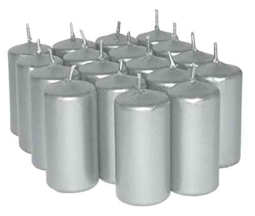 HotStar Candele Ornamentali Argento Metallizzato Verniciato Moccoli Durata7-8 Ore 35x80 mm per decorazioni feste cerimonie (Set 18 Pezzi Argento Metallizzato Verniciato)