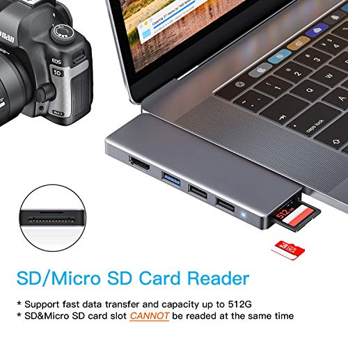 [7 IN 1 Macbook Hub]: Macbook Pro/Air Adapter Estendi i tuoi dispositivi con porta di ricarica USB-C (Thunderbolt 3), 4K HDMI, lettore di schede SD/Micro SD, 1 * USB 3.0 e 2 * USB 2.0, consente ai tuoi dispositivi connettiti a più dispositivi, soddisfa le tue esigenze quotidiane. Supporta hot swapping/plug, nessun driver necessario, basta collegarlo e via!