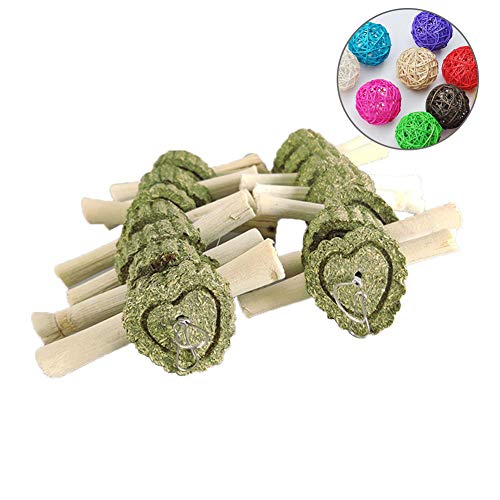 Houdao Giochi per Criceti Fieno per Conigli Nani Naturale bambù Palla di Erba con Torta di Fieno e 1 Pezzo Sepak Takraw Giocattolo Molare Adatto per Conigli Cincillà Criceti Porcellini D'India