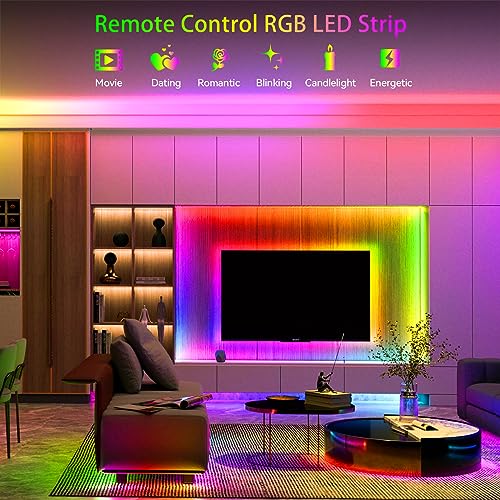 ✔️【Striscia LED RGB con telecomando】Con il telecomando a 24 tasti è possibile regolare facilmente 16 vivaci colori RGB, luminosità, 4 modalità dinamiche e altro. Soluzione di illuminazione e decorazione perfetta per case, motori, camere da letto, cucine, angoli, vacanze, Natale e decorazioni per feste, ecc.