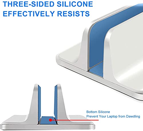 [Protezione e stabilità] - Il supporto verticale per laptop è all'interno con cuscinetti in silicone su entrambi i lati e sul fondo. Il pad in silicone su tre lati protegge il tuo laptop dai graffi. La base antiscivolo con cuscinetto in silicone rende anche il supporto più stabile.