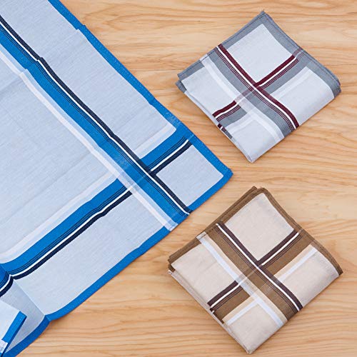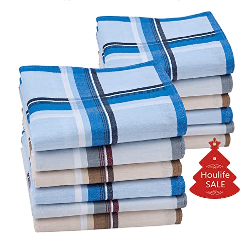 HOULIFE Fazzoletti da uomo in puro cotone, 43 x 43 cm, 3 colori per uso quotidiano, 6/12 pezzi regali di Natale, Misto 12 pezzi, Large