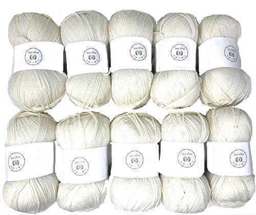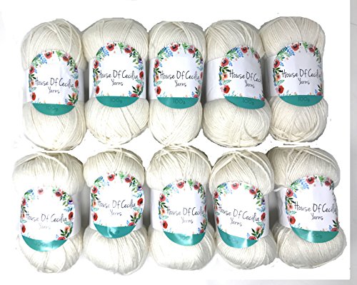 Questo prodotto di House of Cecilia include 10 gomitoli di filato 100% acrilico in bianco neve.Ogni gomitolo pesa 100 g, 8 strati, o doppia maglia.Gomitolo di 300 m.Per ferri da maglia da 3,75 - 4,5 mm.