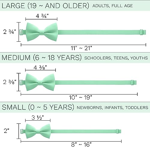 Bow Tie House Classic Pre-Tied Bow Tie Formal Solid Tuxedo, by (Medium, Green Mint)