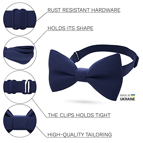 Bow Tie House Classic Pre-Tied Bow Tie Formal Solid Tuxedo, by (Small, Navy Blue)