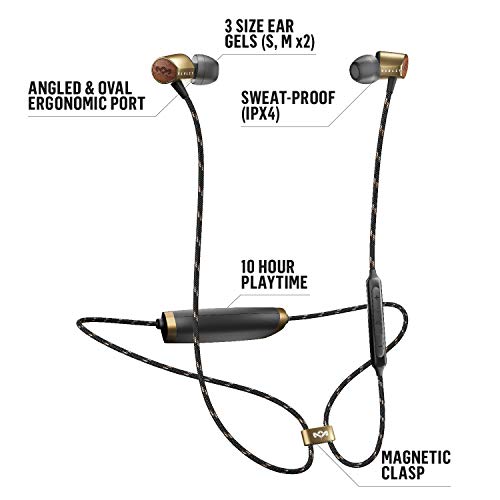 House of Marley Uplift 2 Bluetooth Wireless, Fino a 8 ore di riproduzione, Microfono con 3 pulsanti di controllo ideale per IOS e Android, Ultraleggeri, Nero/Oro
