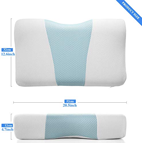 Housefar Cuscino Cervicale Memory Foam,Guanciale Letto in Memory Foam Ergonomico per Dolori a Collo e Cervicali, Federa Morbida Rimovibile e Lavabile