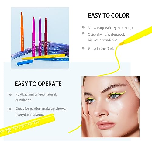 【Eyeliner fluorescente】Il colore è brillante e diventa fluorescente di notte.Ha una vasta gamma di usi, non solo per l'eyeliner, ma anche per vari trucchi.I colori possono essere impilati per creare un trucco luminoso perfetto.