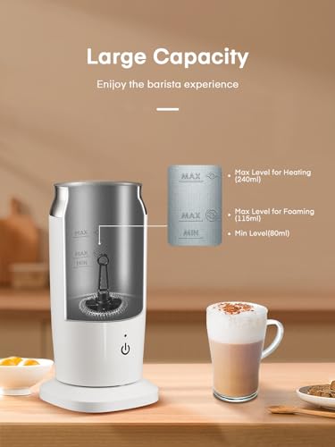 ☕【Due rotori a struttura eccentrica per una schiuma liscia e cremosa】Questo scaldalatte utilizza una struttura eccentrica inferiore professionale. Dopo numerosi test, è stato dotato di una ragionevole distanza tra le molle per garantire un contatto p