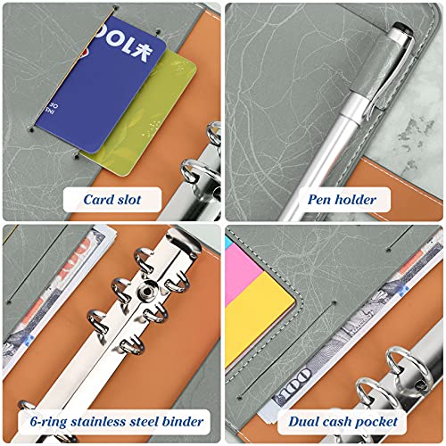 Housolution [Migliorato] Raccoglitore A6 in pelle PU, portadocumenti multiuso con 12 tasche trasparenti con chiusura lampo, cartella per conferenze, raccoglitori a 6 anelli, colore: grigio