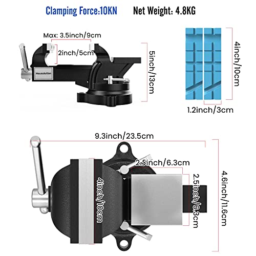 Housolution Morsa da tavolo Professionale in Ghisa, Morsa da banco con Ganasce Magnetiche, Base Girevole 260°Accessori officina Morsa Apertura di 10cm, Morsa per Falegnameria, officina - Nero