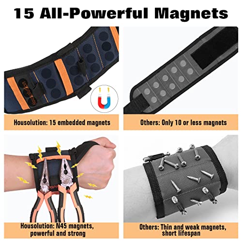 Housolution Porta Utensili Magnetico Regolabile, Cinture per Utensili Multifunzionali, Bracciale di Utensili, Porta Attrezzi per Viti Chiodi, Bracciale Magnetico per Falegname, Blu Scuro/Arancione