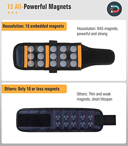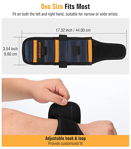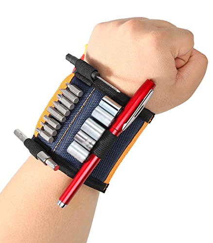 Housolution Porta Utensili Magnetico Regolabile, Cinture per Utensili Multifunzionali, Bracciale di Utensili, Bracciale Magnetico per Falegname, Porta Attrezzi per Viti Chiodi, Blu Scuro/Arancione