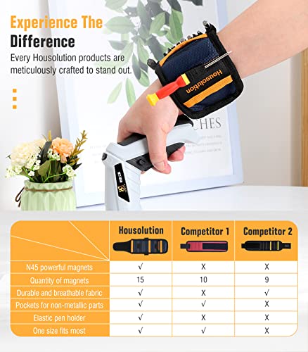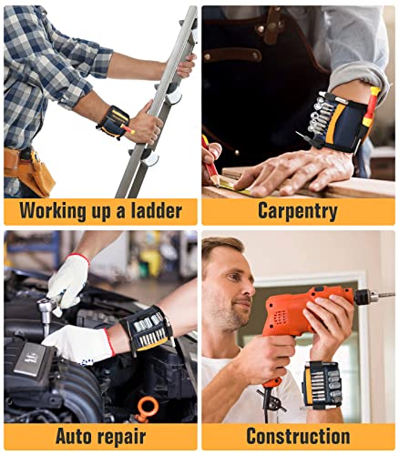 【Design Conveniente】- I braccialetti magnetici sono ideali per i lavoratori che hanno bisogno di conservare piccoli pezzi di metallo e viti sui polsi mentre fanno le riparazioni. Essi forniscono efficacemente una terza mano. Utile per riparatori domestici, lavoratori del legno, falegnami, meccanici auto, idraulici.