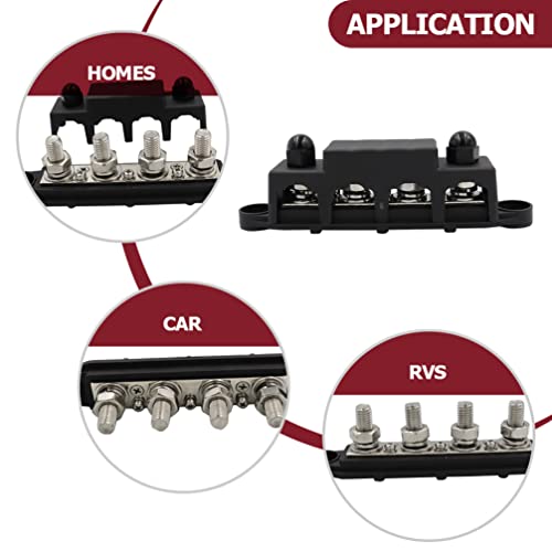 Housoutil 4 Post Power Distribution Block Bus Bar Coid con Cover Terminal Block Back Bus Bar per Trascorso di Auto Marine Automici Nero