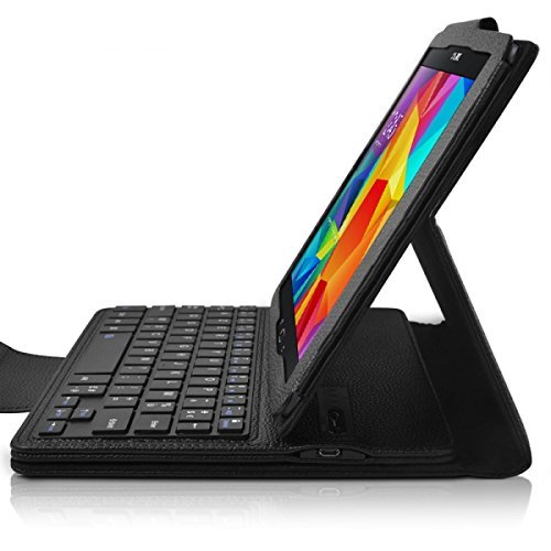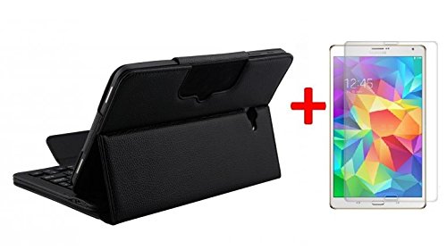 Housse avec clavier ( AZERTY) Bluetooth pour Galaxy Tab A 10.1 WiFi SM-T580, Galaxy Tab A 10.1 LTE SM-T585 Couleur NOIR + verre trempé