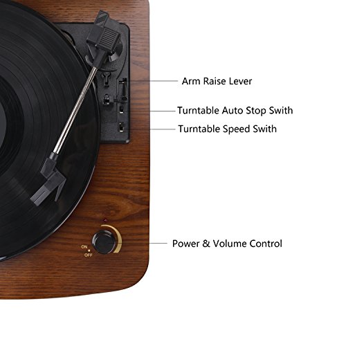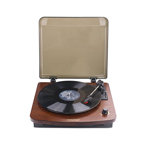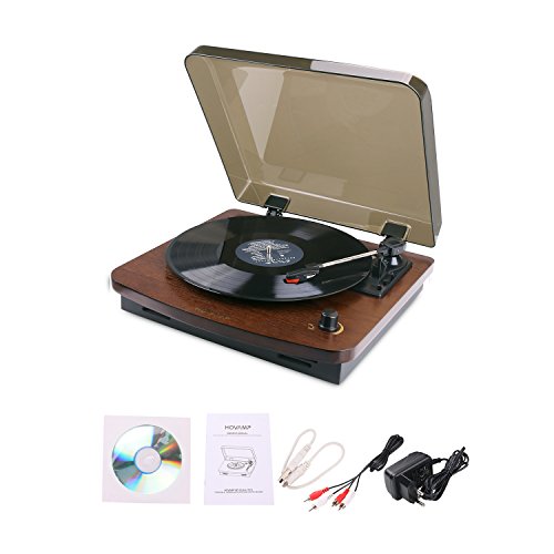 HOVAMP MT-01 Giradischi, Retro Giradischi Stereo Con Funzione Vinyl-To-MP3 E 2 Altoparlanti In Legno Naturale Al 100% (CAFFÈ)