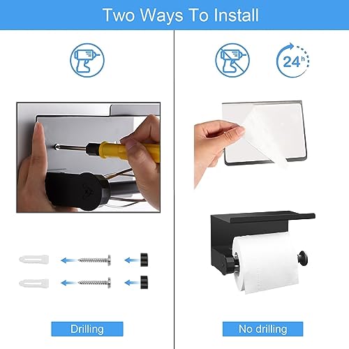 Due modalità di installazione: offriamo due modalità di installazione e forniamo le relative componenti in dotazione in modo che tu possa scegliere in base alle tue esigenze. Installazione con fori: fissare saldamente il porta rotolo di carta igienica al muro utilizzando le viti attraverso i fori. Installazione senza fori: utilizzare l'adesivo per attaccare facilmente il porta rotoli di carta igienica al muro, senza dover eseguire operazioni complesse.