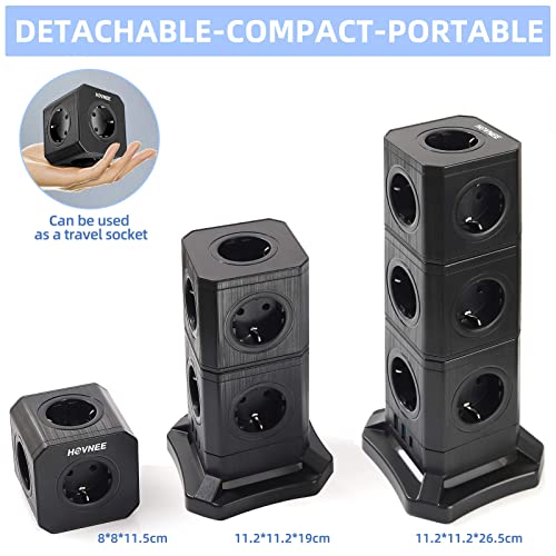 HOVNEE Multipresa Verticale a 15 prese e protezione da sovratensioni (2500 W/10 A), Ciabatta Multipresa Con Presa USB (tipo A, Type-C) con cavo da 2,0 m, rimovibile