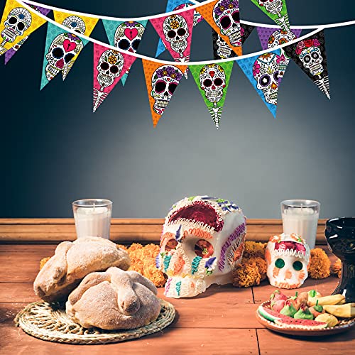 HOWAF Bandierine Dia De Los Muertos, Fiesta Messicana Bandierine, Multicolore Giorno dei Morti Cranio Bandiere Triangolari Halloween Striscione Cinco de Mayo Decorazioni Feste Messicane Compleanno