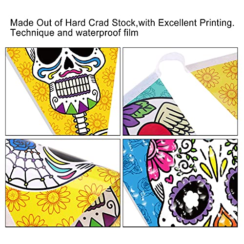 Materiale di alta qualità: queste bandiere per striscioni a forma di teschio con decorazioni Day of The Dead sono realizzate in carta di alta qualità rivestita con uno strato protettivo, leggere, resistenti e puoi usarle per molte volte, non si sbiadiranno facilmente.