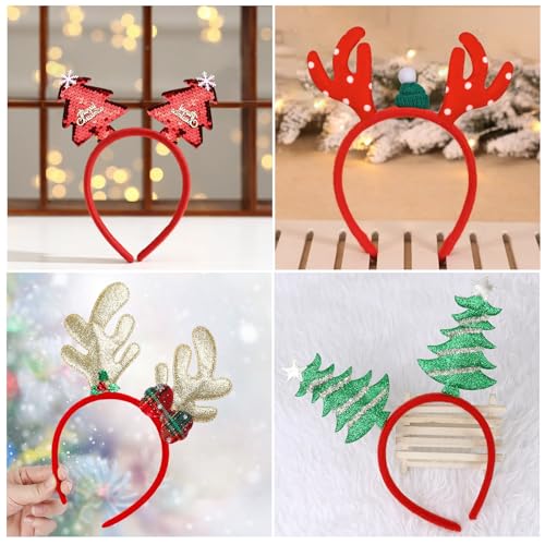 HOWAF Cerchietti Natalizi, 6 Pezzi Cerchietto Natale per Donna, Bambina, Natalizia Cappello Albero di Natale Corna di Renne Fasce per Feste di Natale Decorazione per Bambini e Adulti