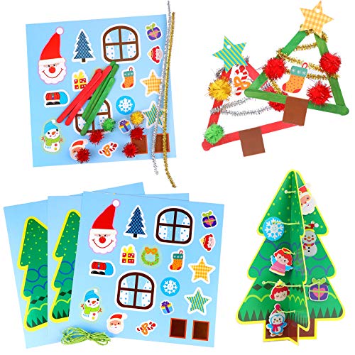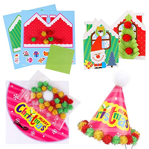 HOWAF 10 Natale Artigianato per Bambini Fai-da-Te Albero di Natale Babbo Natale Pupazzo di Neve Cappello di Natale Casa, Bambini Artigianale attività Giocattolo Regalo di Natale