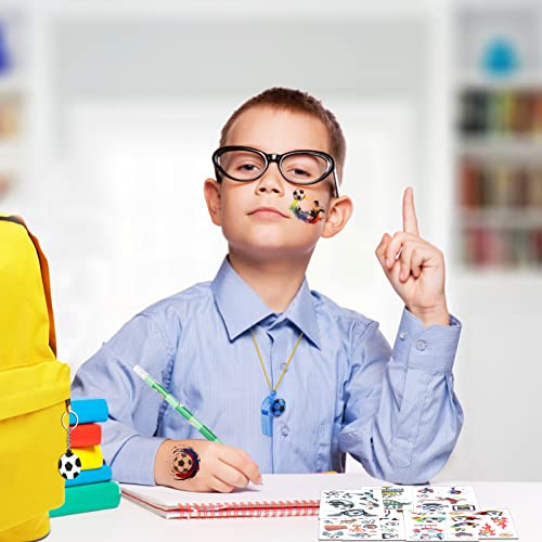 Ampio utilizzo: i nostri fischietti, portachiavi e adesivi per tatuaggi a tema calcio sono i premi ideali per insegnanti e studenti nel carnevale scolastico. Possono essere applicati come decorazioni o come souvenir nel centro sportivo, così come forniture per feste di calcio o regali alla squadra di calcio, ai membri e ai tifosi.