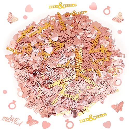 HOWAF 70g Oro Rosa Just Married Confetti Coriandoli da tavola di Nozze Confetti Mr & Mrs Cuore Metallica Lamina Coriandoli Cuori Glitter Coriandoli da Sposa per Matrimoni Decorazioni di Festa Nozze