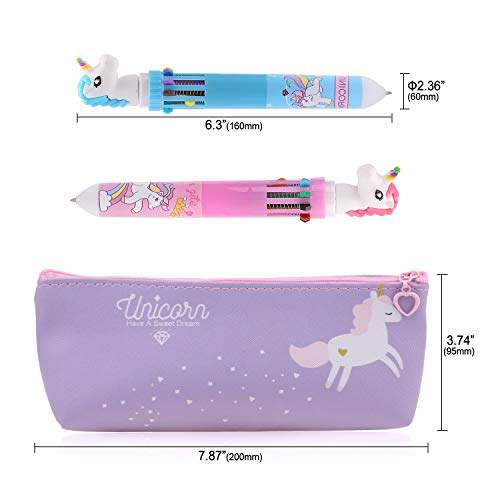 HOWAF Unicorno Astucci Set per Ragazze Scuola con Unicorno Penne Adesivi, Carina Viola Unicorno Astuccio Portamatite per Bambine Studenti Regalo Scolastico Materiale Regalo di Compleanno