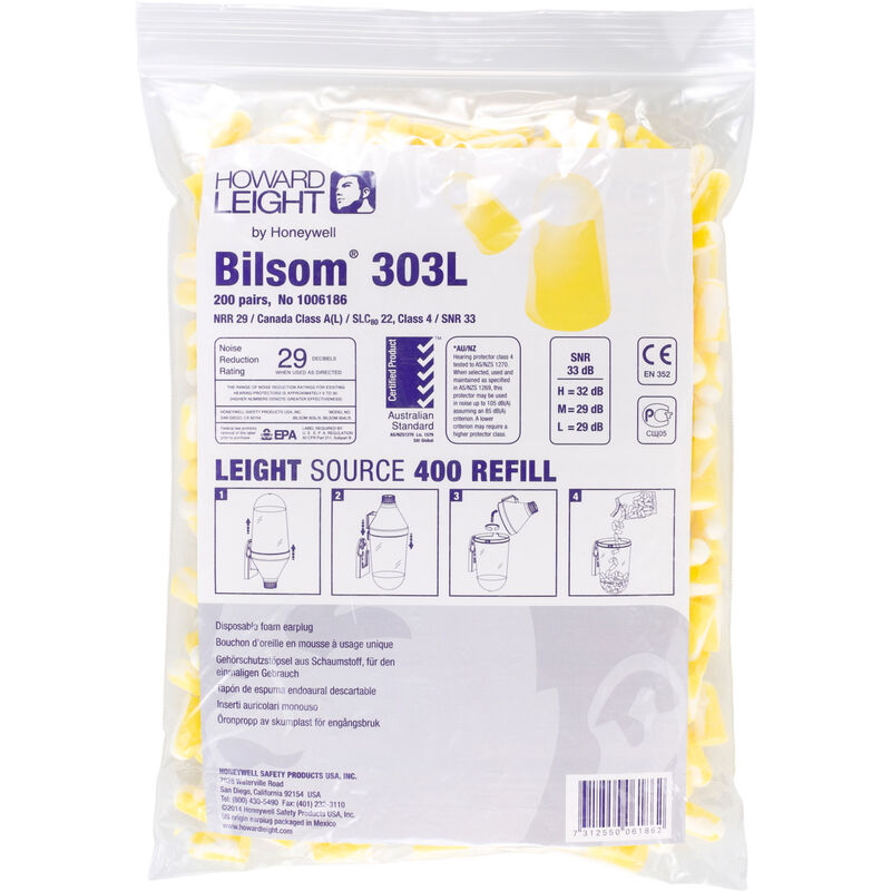Gli inserti auricolari in poliuretano autoadattante si contraddistinguono per la notevole comodità e garantiscono la stabilità nel canale uditivo. La disponibilità di due misure, L per icanaliuditivi di dimensioni normali e S per canali più stretti, offre una migliore indossabilità personale. SNR = 33 dB (H = 32 dB, M = 29 dB, L = 29 dB). Ricarica da 200 paia sfuse per il distributore Bilsom® LH 400-F, n. art. 097512. Uso: Per canali uditivi normali Dati tecnici Materiale degli inserti Poliuretano Valore SNR (valore di isolamento) dB(A) 33 Tipo di prodotto Inserti auricolari monouso Denominazione originale prodotto Bilsomat 400 Contenuto, Paar 200 Dimensione standard Imballaggio singoli