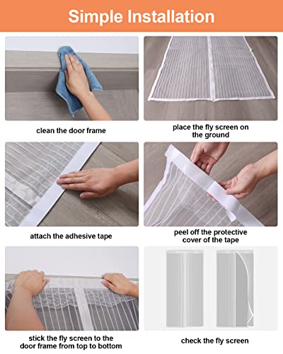 【Facile da installare】on l'aiuto di un nastro adesivo, zanzariera magnetica è semplice da installare, senza forare o altri strumenti. Applica il nastro adesivo autoadesivo sul telaio della porta e applicalo sulla parte superiore della zanzariera, ed è fatto! La zanzariera magnetica rimarrà in vigore per tutta l'estate. Durante l'installazione, Il centro della cortina magnetica deve essere più al