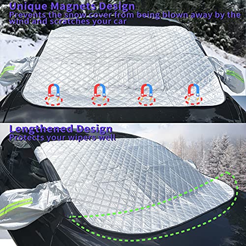 Dimensioni universali: la dimensione estesa 147*120cm è progettata abbastanza a lungo da coprire l'parabrezza e la spazzola del tergicristallo, protegge perfettamente il tergicristallo e impedisce che venga danneggiato dal congelamento in inverno o che venga danneggiato dall'invecchiamento in estate . Il manto nevoso si adatta alla maggior parte dei veicoli come auto, berline, furgoni, camion e SUV. Per garantire un corretto montaggio, si prega di prendere una misurazione accurata del parabrezza