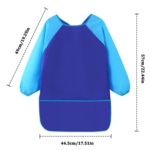 Hoxfly 2 Pezzi Grembiule da Pittura Bambini 5-10 Anni,Grembiulino Scuola Maniche Lunghe con 3 Tasche,Impermeabili Grembiulino Maniche Lunghe Bambini,per Pittura Cucina Scuola casa,Blu&Rosso (Medio)